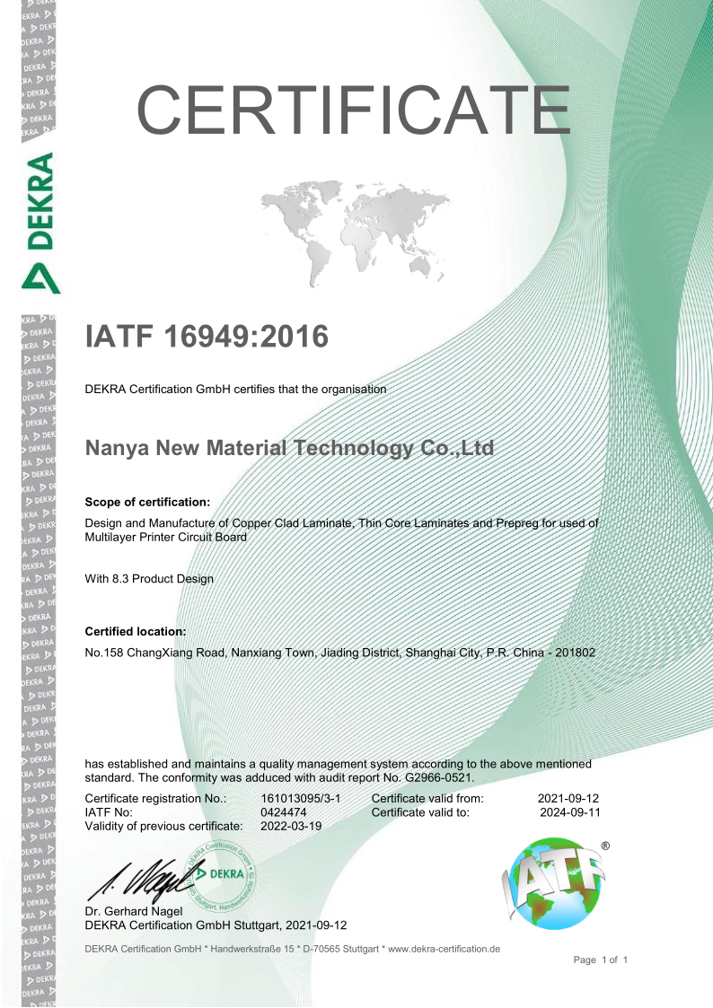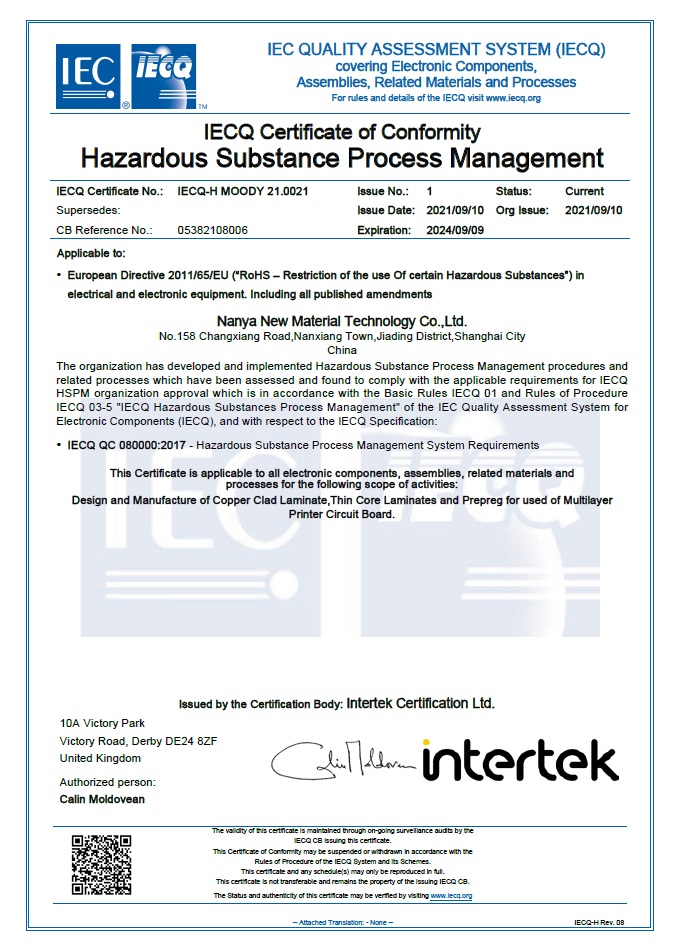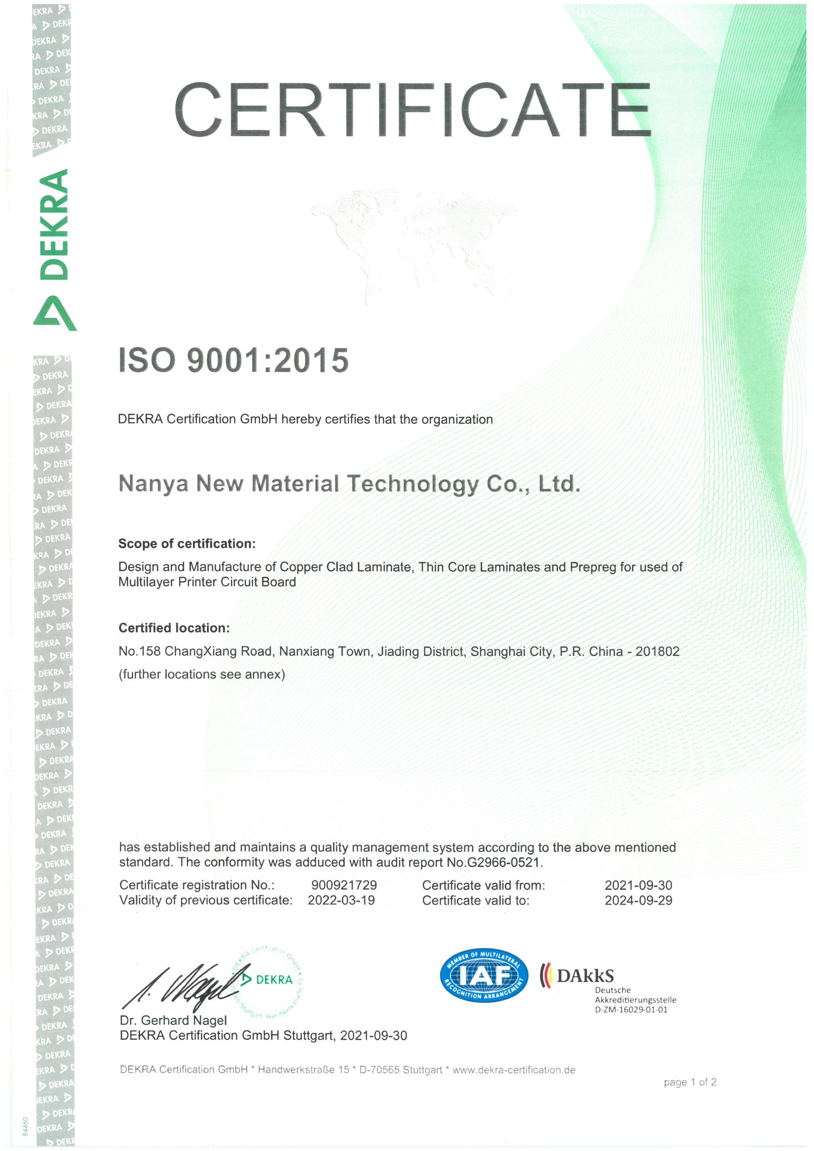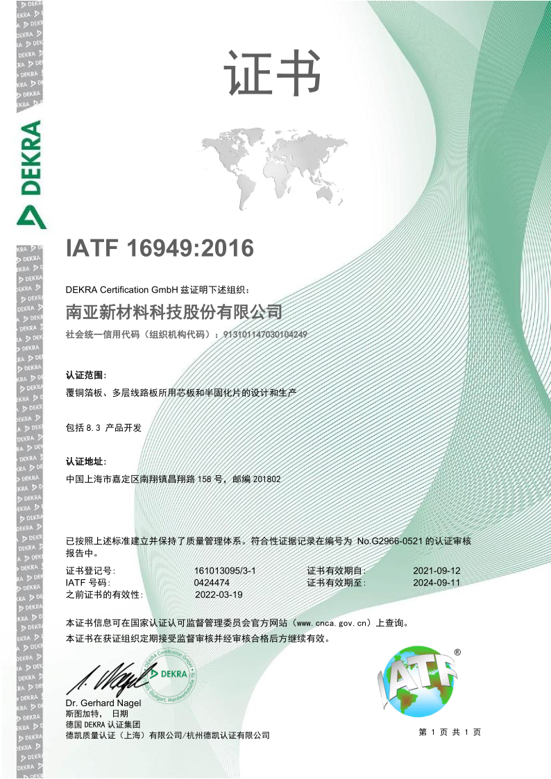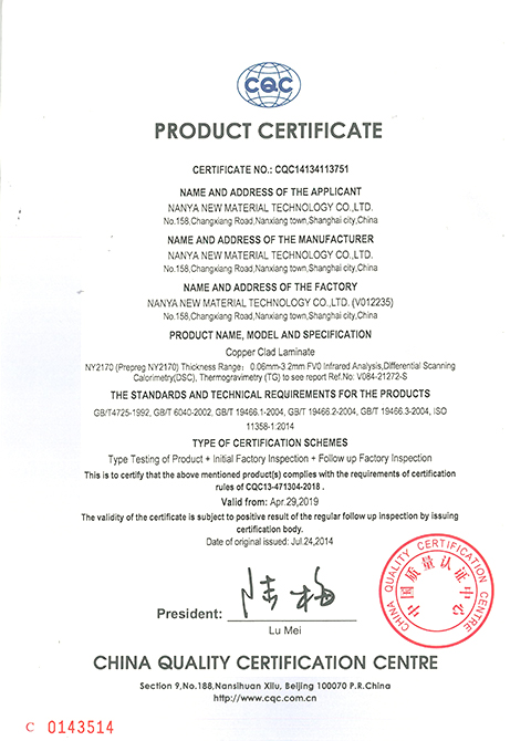南亞新材始終堅持質(zhì)量就是生命,持續(xù)不斷的改進生產(chǎn)技術(shù)和服務(wù)水平,不斷完善質(zhì)量管理體系,務(wù)求滿足并超越不同客戶的要求和期望;經(jīng)過不懈的努力,公司先后通過了ISO9001質(zhì)量管理體系、 ISO14001環(huán)境管理體系和ISO45001職業(yè)健康安全管理體系的認證及改版升級。